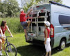 Prosty w obsłudze, stabilny i bezpieczny, składany bagażnik rowerowy, odpowiedni do mocowania maksymalnie 2 rowerów. Przeznaczony do montażu na tylnej klapie z podwójnymi drzwiami samochodów Mercedes Sprinter oraz Volkswagen Crafter wyprodukowanych po 06/2006 roku.
