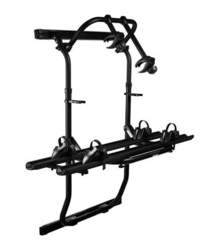 Bagażnik pomieści 2 rowery i nie ma możliwości rozbudowy. W momencie, gdy nie jest używany, można go w prosty i szybki sposób zdjąć z drzwi.