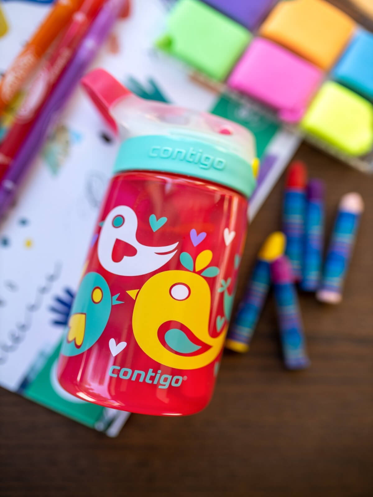 Bidon Contigo posiada idealną pojemność dla dziecka - 420 ml, a jego ergonomiczny kształt ułatwia trzymanie, więc dziecko może wygodnie obsługiwać bidon jedną ręką. Dodatkowo posiada wygodny, elastyczny uchwyt do noszenia butelki. Butelka sprawdzi się w każdej sytuacji - jest bardzo uniwersalna!