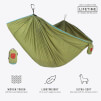 Do hamaka załączony został zestaw lekkich aluminiowych karabinków. Ultraniska waga sprzętu oraz mała wielkość po złożeniu, sprawia, że doskonale sprawdza się podczas pieszych wycieczek. Hamak waży 425 g.