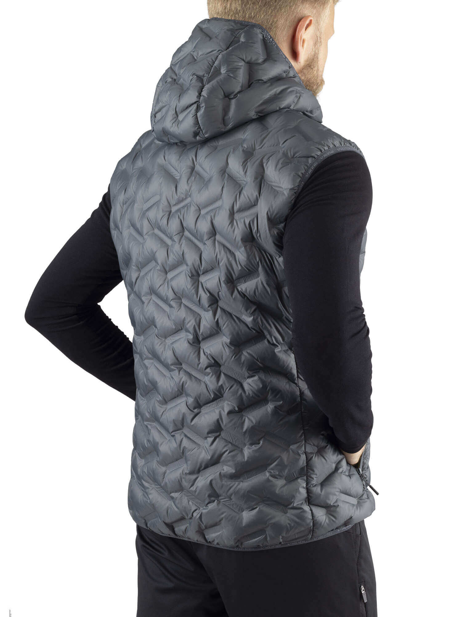 Krój kamizelki jest na tyle lekki, że można jej użyć jako warstwę docieplającą podczas aktywnego spędzania wolnego czasu. Zastosowanie puchu i wysokiej jakości materiałów pozwoliło na stworzenie kurtki o optymalnej wydajności cieplnej.