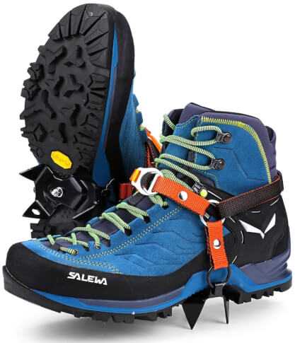 Raczki Mini Crampon 4P Climbing Technology doskonale spiszą się podczas wycieczek po lekko nachylonych stokach górskich, gdzie warunki zimowe nie pozwalają na bezpieczne przejście bez dodatkowego wyposażenia turystycznego. Są doskonałe na mniej strome podejścia i zejścia oraz oblodzone fragmenty szlaków. Model ten posiada możliwość regulacji szerokości bez potrzeby użycia dodatkowych narzędzi. Jeden z zębów każdego z raczków wyposażony został w kluczyk, którym możemy wyregulować drugi raczek. Długość zębów wynosi aż 30 mm i zostały wykonane z wytrzymałej stali.