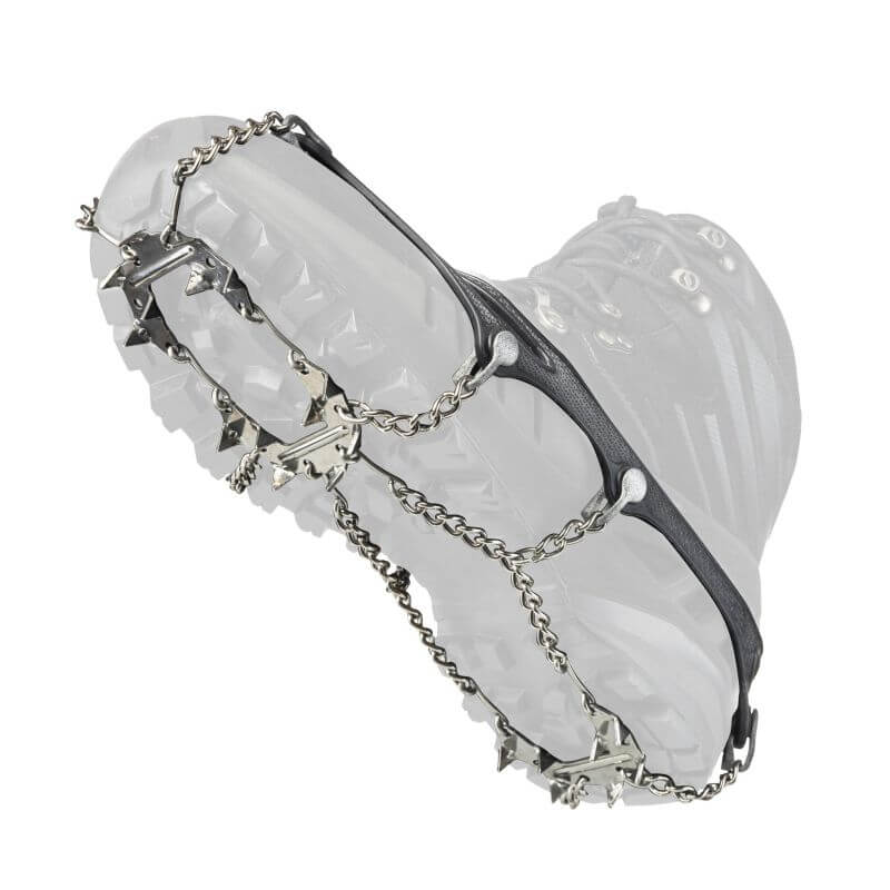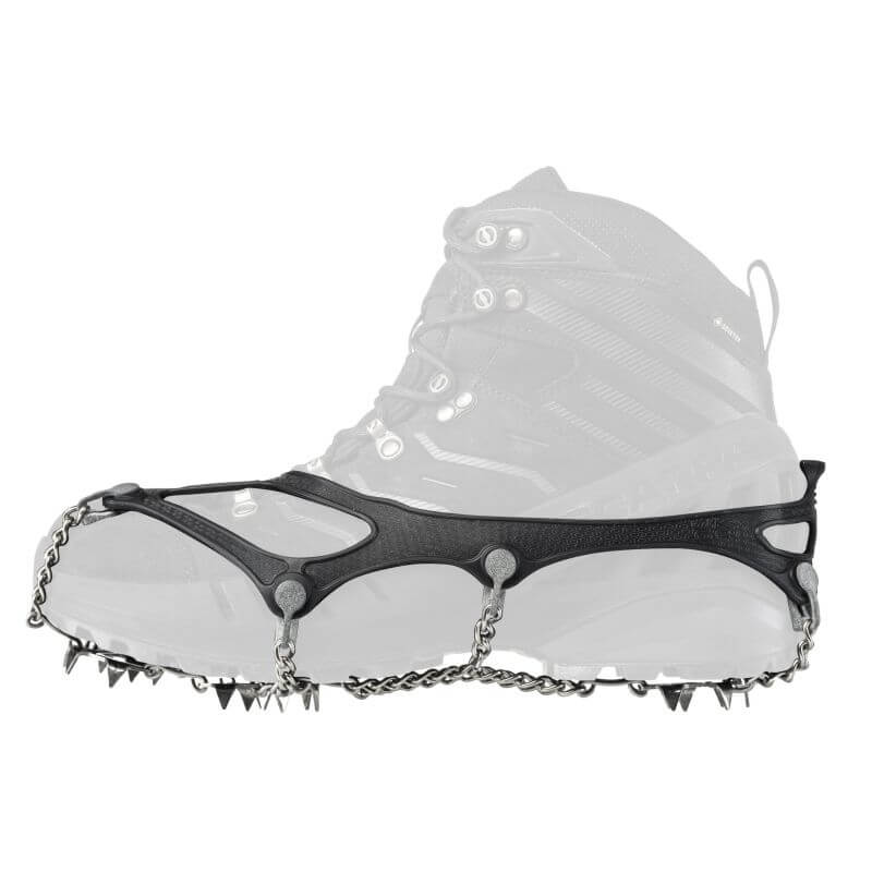 Obejma raczków wykonana jest z wysokowytrzymałego silikonowego elastomeru, który nie tylko ułatwia bardzo łatwe naciąganie nakładek na obuwie, ale jest także niezwykle odporny na skrajnie niskie temperatury, zachowując elastyczność i wytrzymałość aż do -60°C. Dzięki temu masz pewność, że raczki zawsze idealnie dopasują się do Twoich butów biegowych lub lekkich trekkingowych.