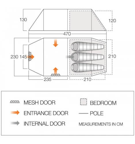 Do przestronnego przedsionka prowadzą dwa wejścia z moskitierą, która poprawia wentylacje wnętrza. Kieszonki na bocznych ściankach w sypialni pomagają uporządkować wszelkie akcesoria biwakowe.