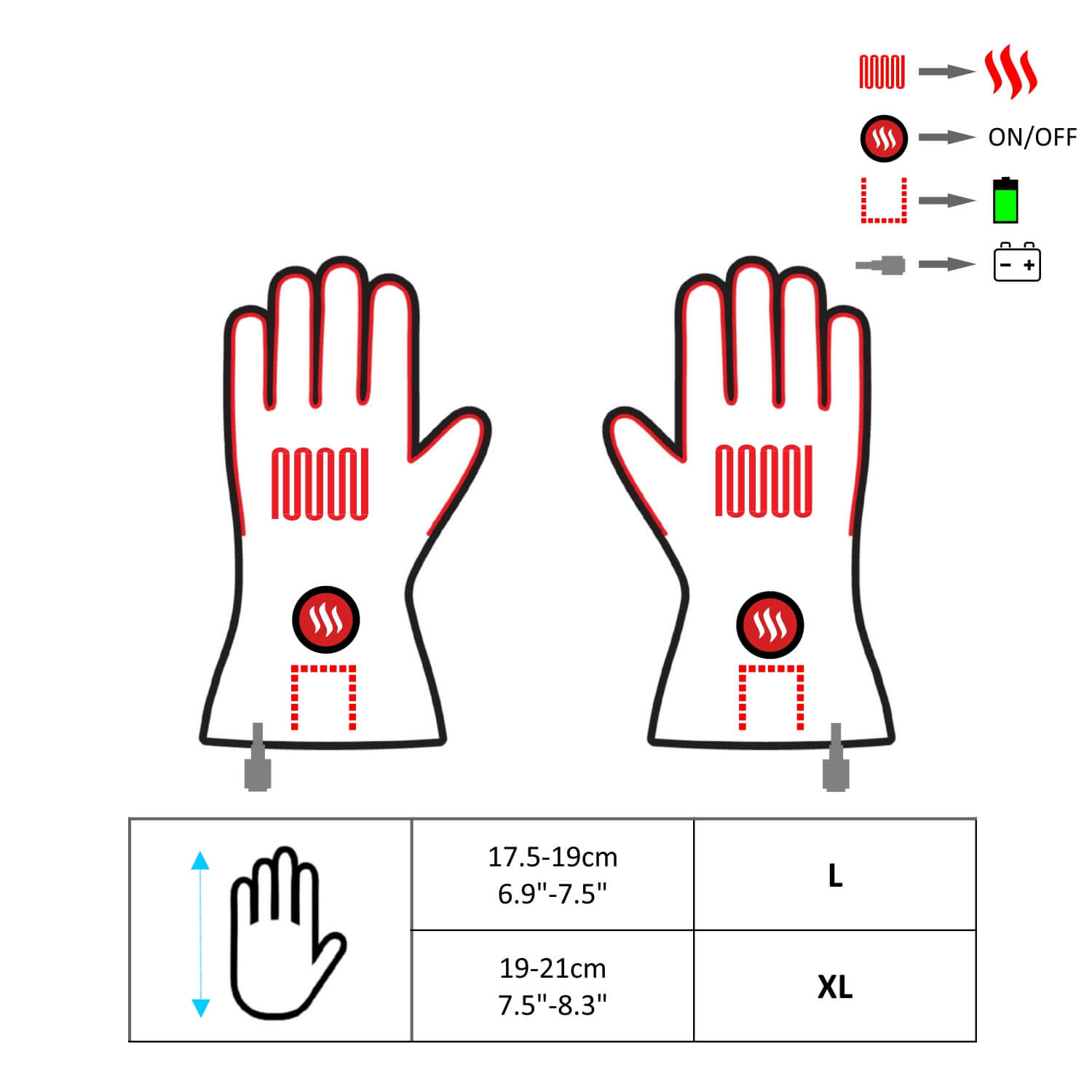 Rękawice mogą być zasilane z dostarczonego w zestawie akumulatora Li - Poly lub mogą być podłączone bezpośrednio do akumulatora motocyklowego. Element grzewczy zbudowany z włókna węglowego zapewnia niespotykaną odporność i trwałość oraz dzięki emisji fal podczerwonych posiada właściwości lecznicze. Znajduje się wokół wszystkich palców i u góry ręki, dzięki czemu Twoje dłonie zawsze pozostaną przyjemnie ciepłe.