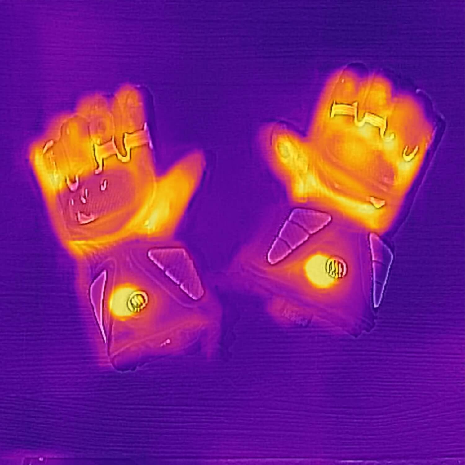 Ogrzewane rękawice Glovii posiadają elementy grzewcze zlokalizowany wokół ich wszystkich palców, skąd równomiernie rozprowadzane jest ciepło w górę rąk. Elementy grzewcze z włókna węglowego są zasilane za pomocą powerbanków umieszczonych w specjalnych kieszeniach w górnej części rękawic. Całością można zdalnie sterować za pomocą dołączonego pilota. Poniższe zdjęcie z kamery termowizyjnej przedstawia sposób rozprowadzania się ciepła w rękawicach ogrzewanych Glovii.