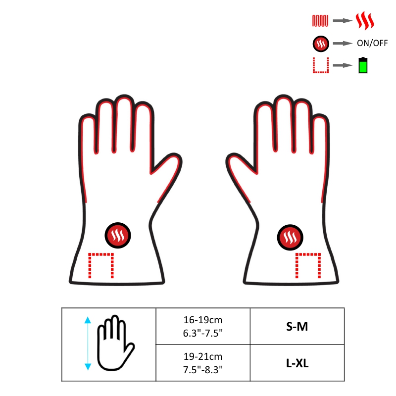 Element grzewczy zbudowany z włókna węglowego zapewnia niespotykaną odporność i trwałość oraz dzięki emisji fal podczerwonych posiada właściwości lecznicze. Znajduje się wokół wszystkich palców i u góry ręki, dzięki czemu Twoje dłonie zawsze pozostaną przyjemnie ciepłe. Bezpieczna i wydajna bateria Li-Poly zapewnia długi czas pracy systemu ogrzewania. Z boku rękawic znajduje się specjalna kieszonka na baterie.