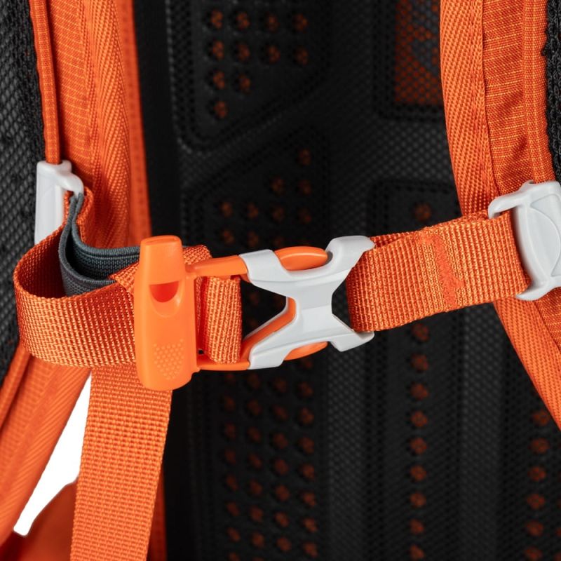 Specjalne regulowane pasy biodrowe i piersiowe z gwizdkiem, zadbają o stabilność ciała. Dodatkowo wspiera to system nośny zapewniający najwyższy komfort podróży.