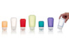 GoToob+ ma nowy, większy otwór, który ułatwia zarówno napełnianie, jak i czyszczenie opakowań. Dzięki specjalnie wyprofilowanym dnom, pojemniki można łatwo stawiać pionowo. Na silikonie znajdują się wskaźniki rozmiaru. Pojemniki dostępne w różnych pojemnościach, kształtach, kolorach i rozmiarach.