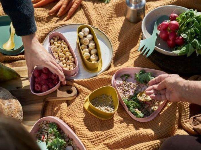 Składa się z dwóch talerzy, sporka (łyżki, noża i widelca w jednym), dwóch szczelnych pojemników SnapBox o różnych rozmiarach i kształtach. Elementy zestawu łatwo wyczyścić – można je umyć w zmywarce. Możliwe jest także podgrzewanie znajdujących się w nich posiłków Zestaw w kuchence mikrofalowej. nie zawiera BPA.