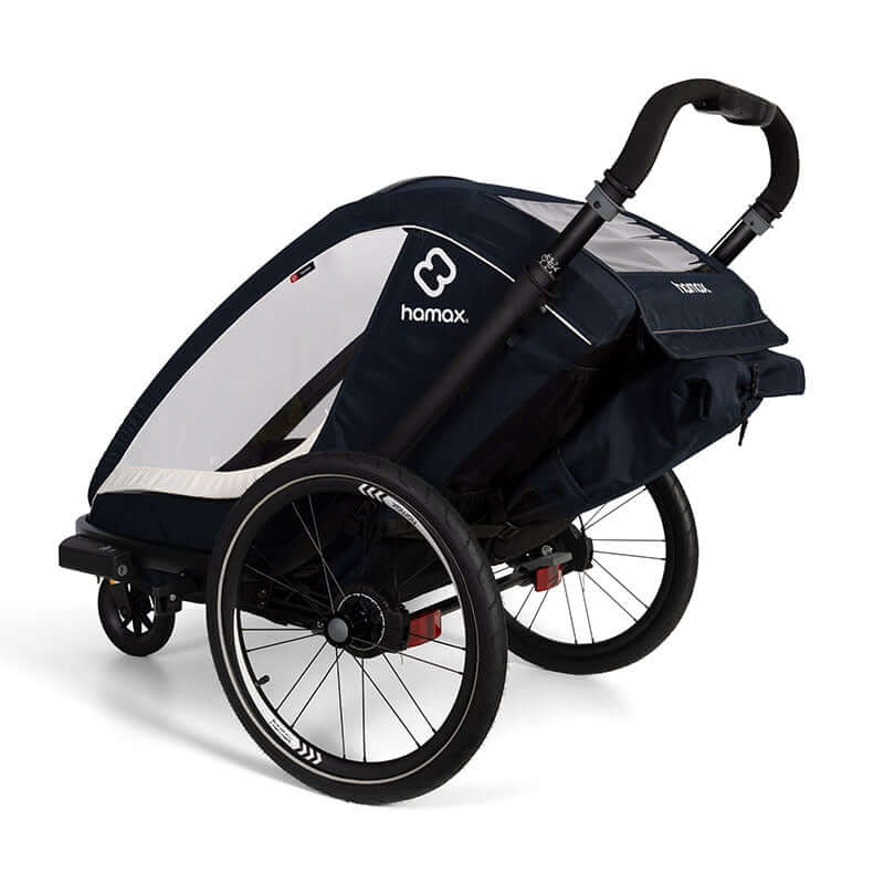 Przyczepka Hamax jest bardzo komfortowa zarówno dla dzieci jak i osoby kierującej rowerem czy biegającej. Posiada regulowane zawieszenie oraz amortyzację sprężynową, która zwiększa komfort podczas jazdy. Wewnątrz kabiny znajduje się miejsce na kask, a pięcio-punktowe pasy bezpieczeństwa zostały wyposażone w wyściełane szelki. Siedzisko można ustawić w trzech różnych pozycjach. Przyczepka została wyposażona w boczne okna z filtrem UV oraz w osłonę przeciwsłoneczną, dzięki którym dzieci mogą cały czas bezpiecznie obserwować otoczenie oraz w przezroczystą siatkę, która zapewnia optymalną wentylację i ochronę przed owadami.