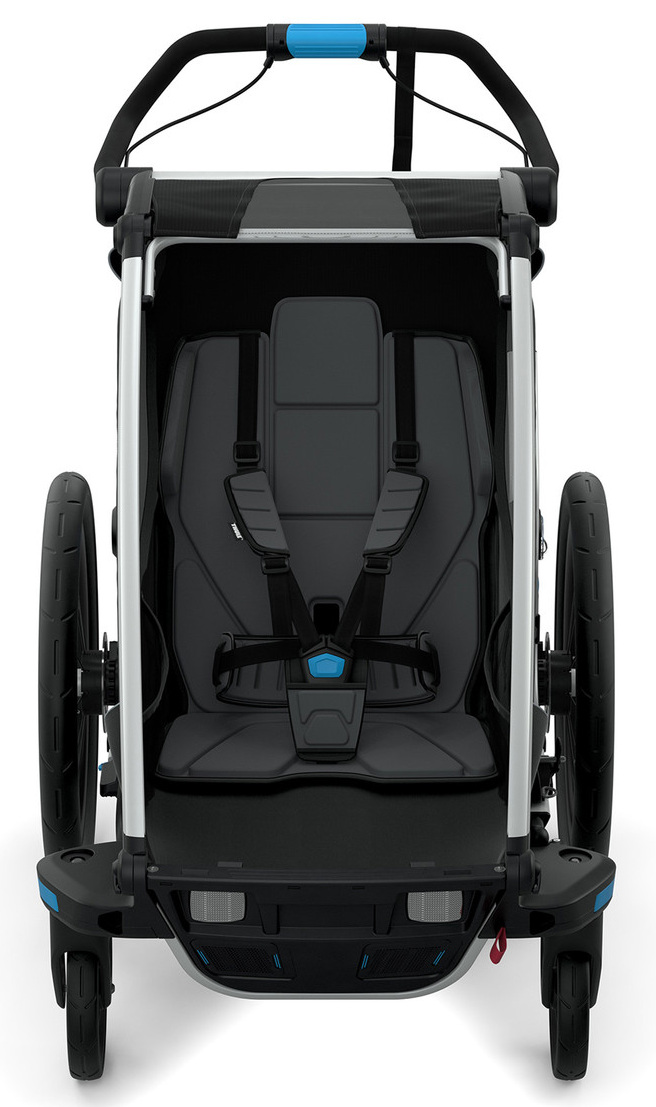 Przyczepka Thule Chariot Sport 1 jest przystosowana do przewożenia jednego dziecka. Jest bardzo bezpieczna i komfortowa. W środku znajduje się wygodne siedzenie z wyściełaną wkładką i regulowanym oparciem. Siedzenia są wyjmowane, co znacznie ułatwia ich czyszczenie. Jeśli maluchowi zdarzy się zasnąć podczas wycieczki w łatwy sposób możemy jedną ręką odchylić oparcie siedzenia by zwiększyć jego komfort jazdy podczas spania. W przyczepce Thule na uwagę zasługuje kabina Climate Control Cockpit z wyjmowanymi oknami oraz regulowaną osłoną przeciwsłoneczną. W zależności od potrzeb możemy regulować stopniem zasłonięcia kabiny przed szkodliwym promieniowaniem słonecznym. Otwory wentylacyjne są również regulowane i pozwalają na optymalny przepływ powietrza i kontrolę temperatury wewnątrz kabiny. Podczas deszczu i założonej osłonie przeciwdeszczowej można dodatkowo wyjąć specjalne zaciski, które zwiększą stopień wentylacji.