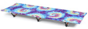 Łóżko zostało wykonane z wysokiej jakości materiałów, odpornych na działanie wody i czynników atmosferycznych. Lekka, aluminiowa rama gwarantuje stabilność i wytrzymałość. Optymalne warunki do wypoczynku zapewnia regulacja oparcia łóżka w pięciu płaszczyznach. Komfort użytkowania dodatkowo podnosi regulowany daszek chroniący przed słońcem. Łóżko jest łatwe w transporcie, po złożeniu zajmuje mało miejsca. Dostępne w pięknych, żywych kolorach.