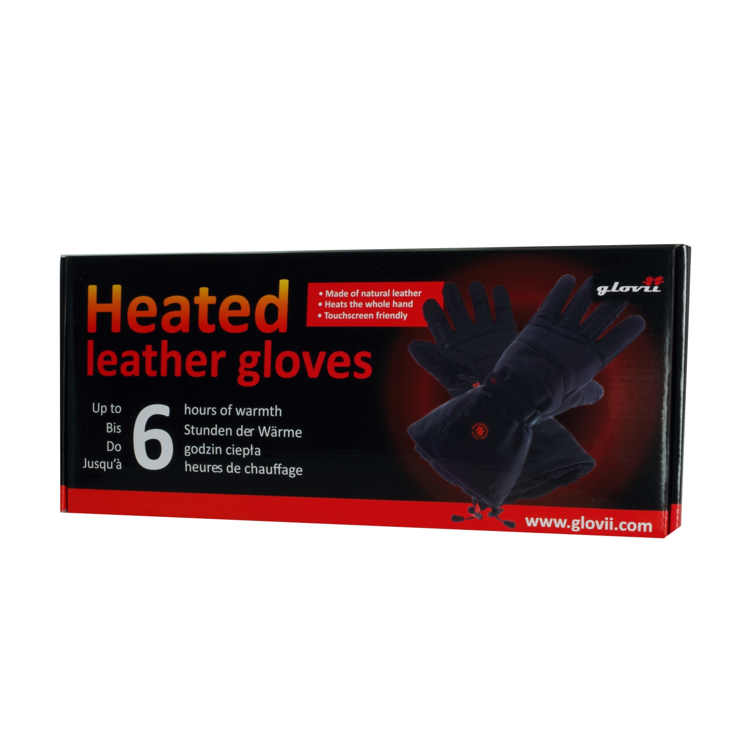 Ogrzewane rękawice Glovii posiadają elementy grzewcze zlokalizowany wokół ich wszystkich palców, skąd równomiernie rozprowadzane jest ciepło w górę rąk. Elementy grzewcze z włókna węglowego są zasilane za pomocą powerbanków umieszczonych w specjalnych kieszeniach w górnej części rękawic. Całością można zdalnie sterować za pomocą dołączonego pilota. Poniższe zdjęcie z kamery termowizyjnej przedstawia sposób rozprowadzania się ciepła w rękawicach ogrzewanych Glovii.