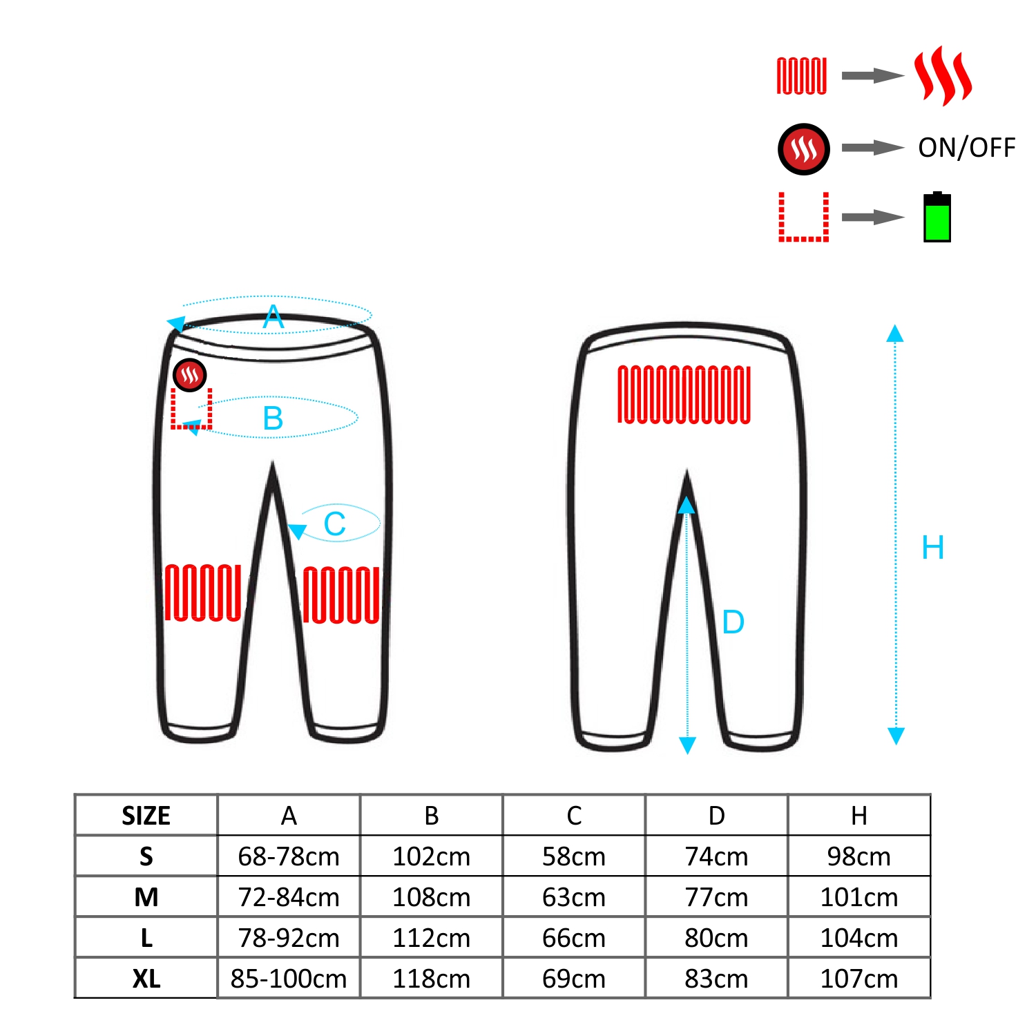 Uwaga! Spodnie grzeją tylko w czasie podłączenia do baterii (dołączona do zestawu).