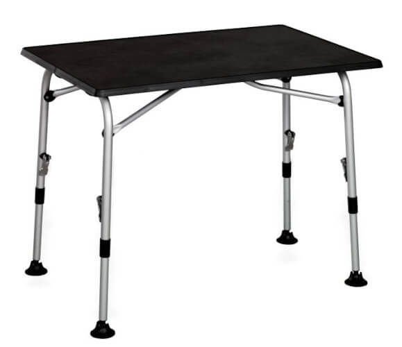 Stół charakteryzuje się wysoką jakością wykonania, posiada lekki blat o dużej wytrzymałości, odporny na warunki atmosferyczne. Stół posiada nogi regulowane bezstopniowo za pomocą małych dźwigni, dzięki czemu można łatwo ustabilizować go na nierównym terenie. Rama stołu jest składana i blokowana centralnym zamknięciem za pomocą dźwigni. Specjalny system nóżek z szeroką podstawą zapewnia stabilne podparcie i zapobiega "wbijaniu" się w podłoże.