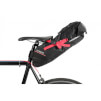 Wykonana z materiału zapobiegającemu rozdzieraniu na podstawie.Torbę mocuje się do szyn siodełka i sztycy podsiodłowej, aby optymalnie rozłożyć ciężar na rowerze.