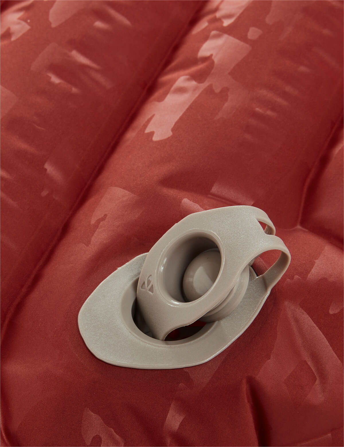 Materac ma płaski zawór VAUDE do napełniania i deflacji, dzięki czemu możemy indywidualnie dobrać twardość maty dla każdego użytkownika.