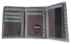 Zewnętrzna strona portfela ozdobiona jest asymetrycznym przeszyciem i logo producenta.