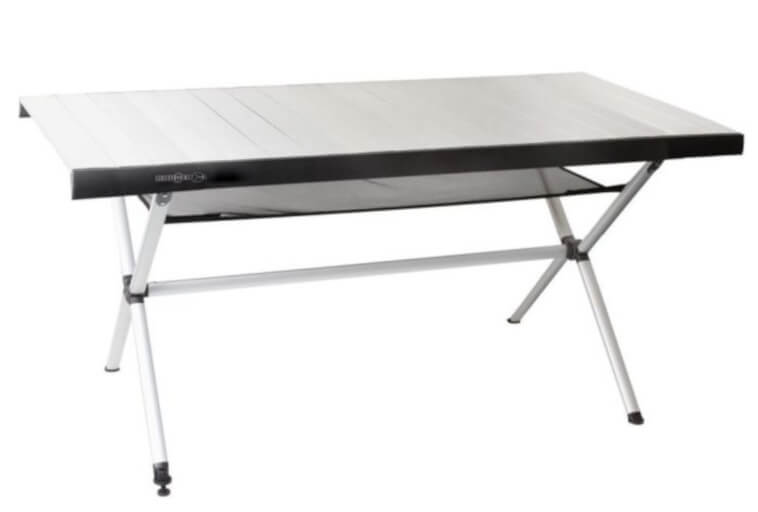 Wykonanie z wysokiej jakości aluminium zapewnia trwałość i komfort użytkowania. Blat wykonany z lekkiego aluminium malowanego proszkowo zaprojektowano z możliwością zrolowania w harmonijkę. System bez przerw czy łączeń, co zapewnia gładką powierzchnię blatu po jego rozłożeniu. Pod blatem zainstalowana została podwieszana, praktyka półka z siatki na dodatkowe miejsce do magazynowania drobnych rzeczy podręcznych takich jak np. gazety, mapy, książki. Stabilna listwa stabilizuje całą konstrukcję. Konstrukcja także wykonana z aluminium, co zapewnia optymalną wagę i poręczność stołka. Stół kempingowy Accelerate 6 wyposażono w składane nogi aluminiowe, która na zakończeniu posiadają blokady położenia pozwalające na wypoziomowanie stołu praktycznie w każdym terenie i chroniące przed zapadaniem się w niestabilne podłoże. Wytrzymuje obciążenie do 30 kg!