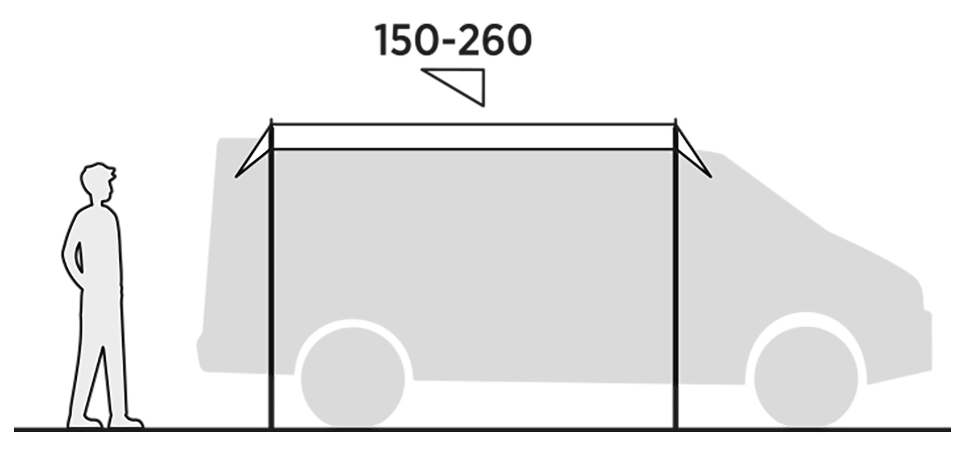 Jedną z kluczowych zalet zadaszenia Easy Camp Voss Canopy jest jego niezwykle prosty i szybki montaż. Możliwość przymocowania do pojazdu za pomocą listew lub linek napinających na dachu sprawia, że zadaszenie pasuje do wielu typów samochodów kempingowych, vanów czy nawet samochodów osobowych z bagażnikiem dachowym. Regulowana wysokość w zakresie od 150 do 260 cm pozwala na idealne dopasowanie do Twojego pojazdu i preferowanej wysokości zadaszenia.