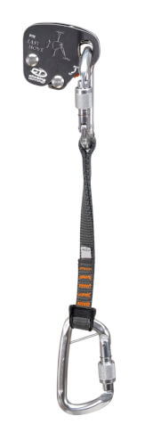 To cudowne urządzenie możemy połączyć z uprzężą dzięki dołączonemu do zestawu ekspresu. Składa się on z wytrzymałej taśmy PAD i dwóch zabezpieczonych karabinków. Poliamid jest ma mniejszą wytrzymałość statyczną niż dyneema, ale lepiej reaguje na szarpnięcia, jest bardziej elastyczny. Górny karabinek posiada dodatkową linkę stalową, która jest na stale połączona z przyrządem. Zastosowano takie rozwiązanie, aby uniemożliwić upuszczenie przyrządu podczas wpinania liny. Oba karabinki posiadają zakręcane zamki, które szybko można obsługiwać nawet jedną ręką, również w założonych rękawiczkach. Karabinki mają także dodatkowe ramiona, które zapobiegają obracaniu się karabinków. Ekspres posiada więc wszystkie cechy, które są ważne przy wyborze bezpiecznego sprzętu. Jego długość wynosi 40cm.