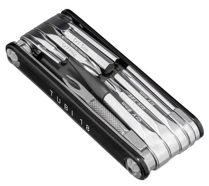 Tubi to 18-funkcyjne narzędzie do naprawy opon bezdętkowych. W komplecie blokada narzędzi z możliwością przedłużenia w celu uzyskania dźwigni i 3 sztuki zatyczek do naprawy opon o wymiarach 3,5 mm x 5 cm.