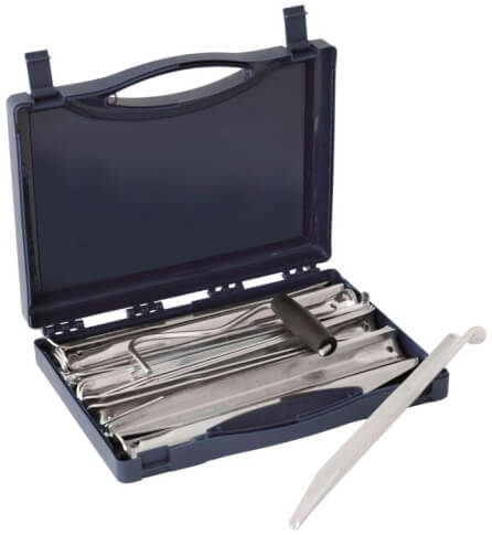 Komplet przeznaczony został do mocowania przedsionka, namiotu, wiaty, pawilonu lub altany. W zestawie znajduje się przyrząd do wyciągania szpilek i śledzi.